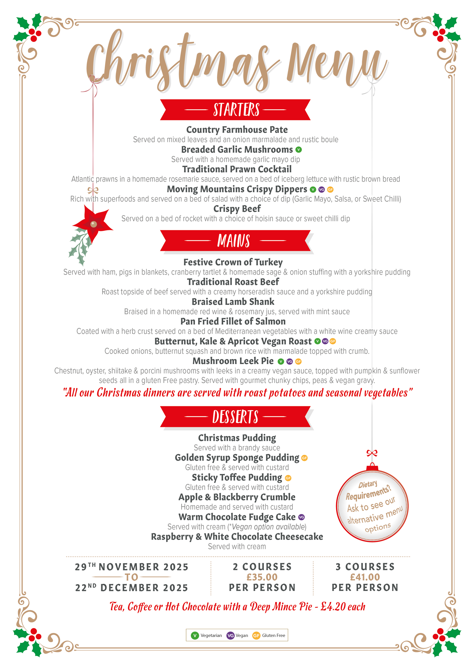 To make a booking call us on 01264 790334 and click the button below to download our christmas menu and our pre-order form.